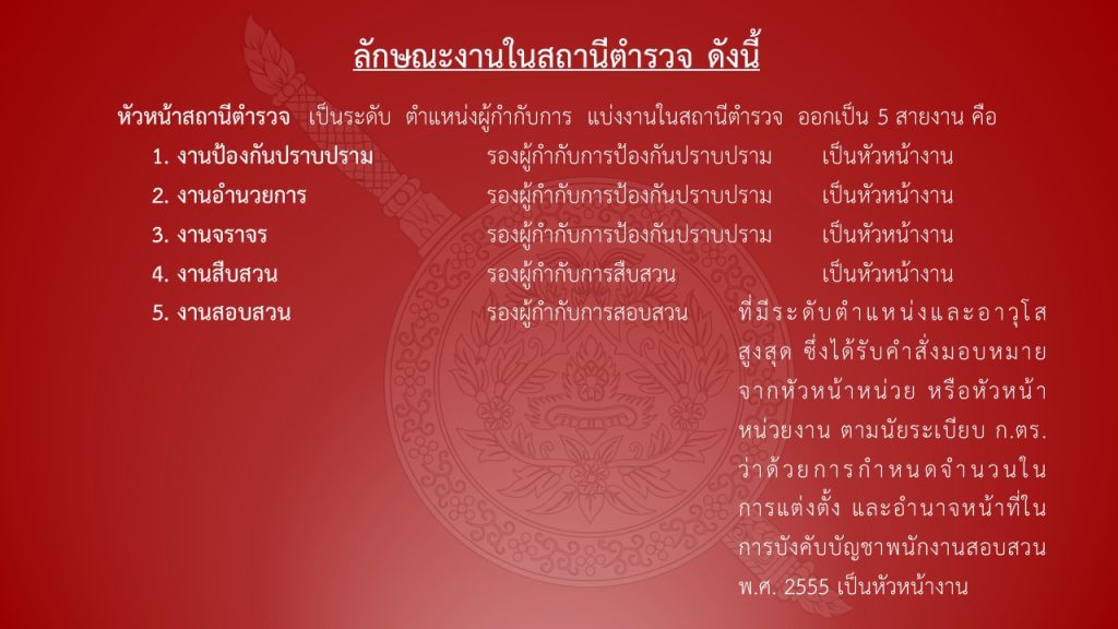 แผนผังโครงสร้างการแบ่งส่วนราชการของสถานีตำรวจ